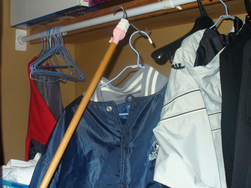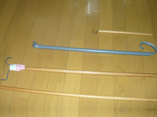 2mのリーチャー(ただの棒)は拾い物ですが、カーテンを閉めたり、電気のスイッチを押したりするときに使用します。リーチャーのおかげで少々高い所の物でも取れたりするので、立ち上がれない頚髄損傷者には必需品です。