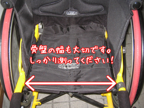 骨盤の幅、車への車椅子の積み込み、自宅のドアの幅、玄関で回転出来るか、スロープの幅などを考慮しながら車椅子はお選びください。モジュール車なので、後からパーツを交換したり調整も可能ですが、それだと余計にお金が掛かかります。